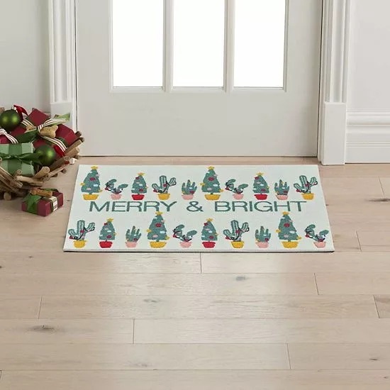 Create a festive feeling with this seasonally stylish St. Nicholas Square® Cactus Merry & Bright Holiday 19.5” x 30” Accent Rug.