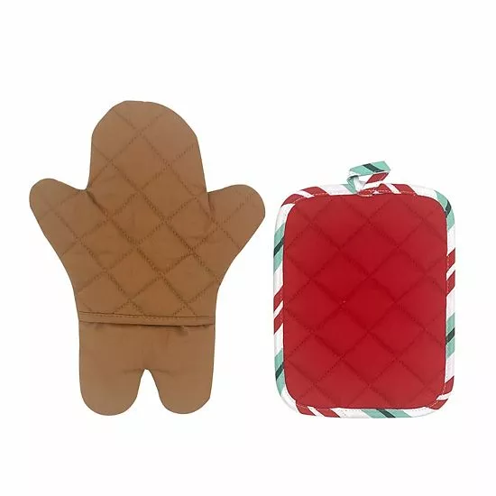 Give your kithen linen collection a sweet seasonal update with this St. Nicholas Square gingerbread oven mitt and pot holder set.